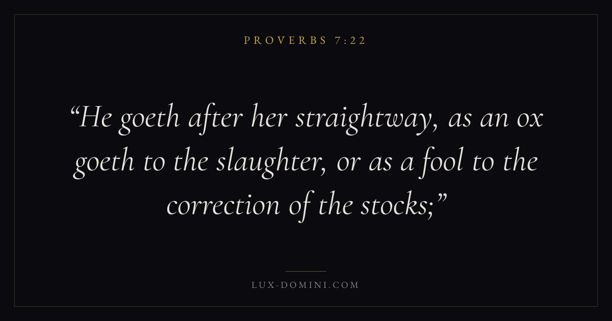 He goeth after her straightway, as an ox goeth to the slaughter, or as a fool to the correction of the stocks;