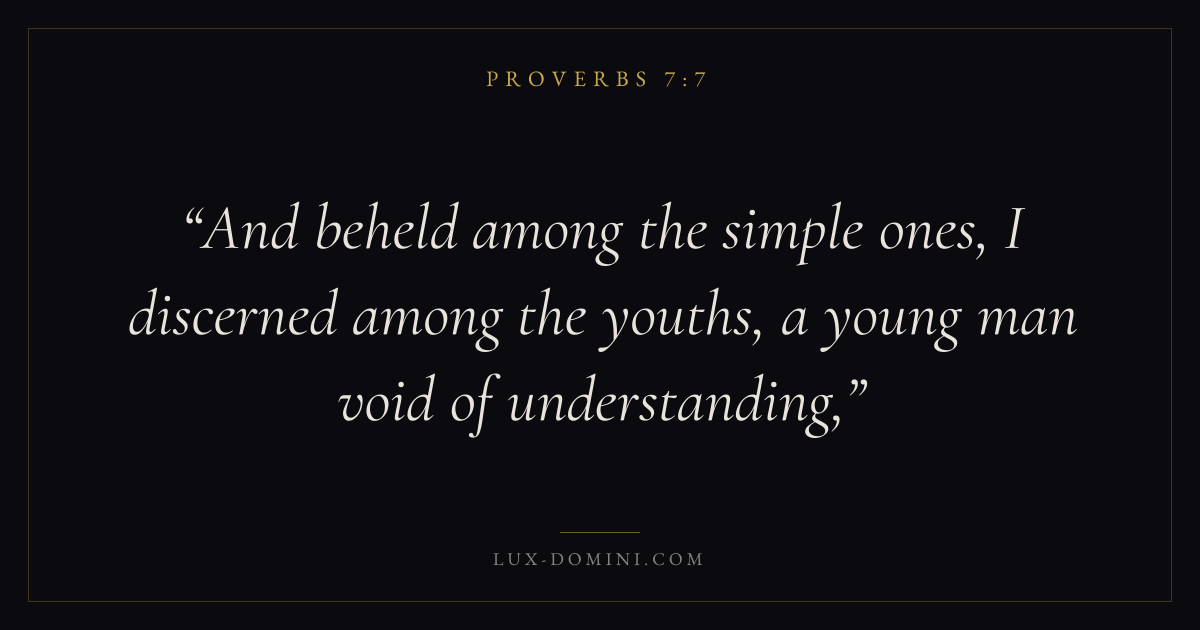 And beheld among the simple ones, I discerned among the youths, a young man void of understanding,