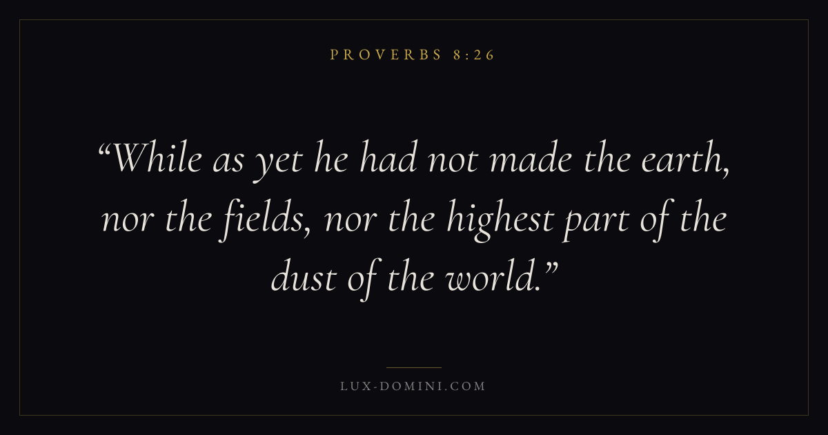 While as yet he had not made the earth, nor the fields, nor the highest part of the dust of the world.