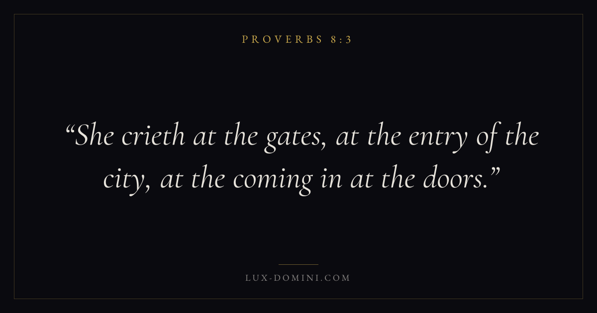 She crieth at the gates, at the entry of the city, at the coming in at the doors.
