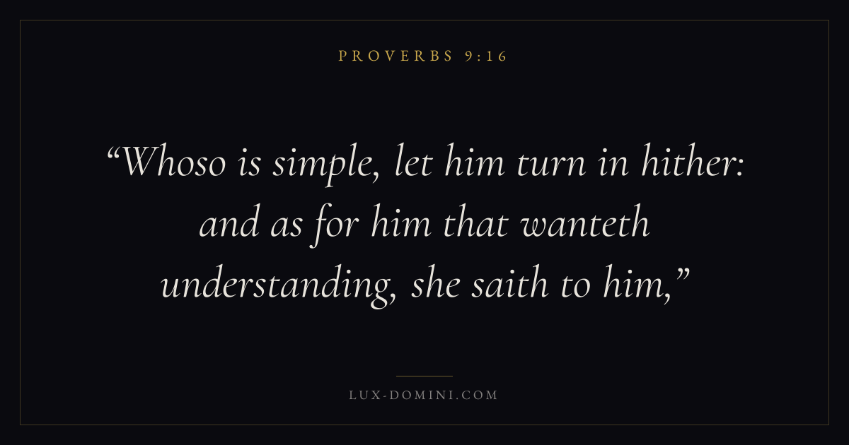 Whoso is simple, let him turn in hither: and as for him that wanteth understanding, she saith to him,