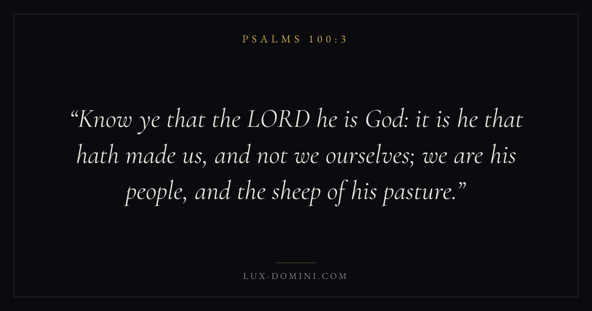 Know ye that the LORD he is God: it is he that hath made us, and not we ourselves; we are his people, and the sheep of his pasture.
