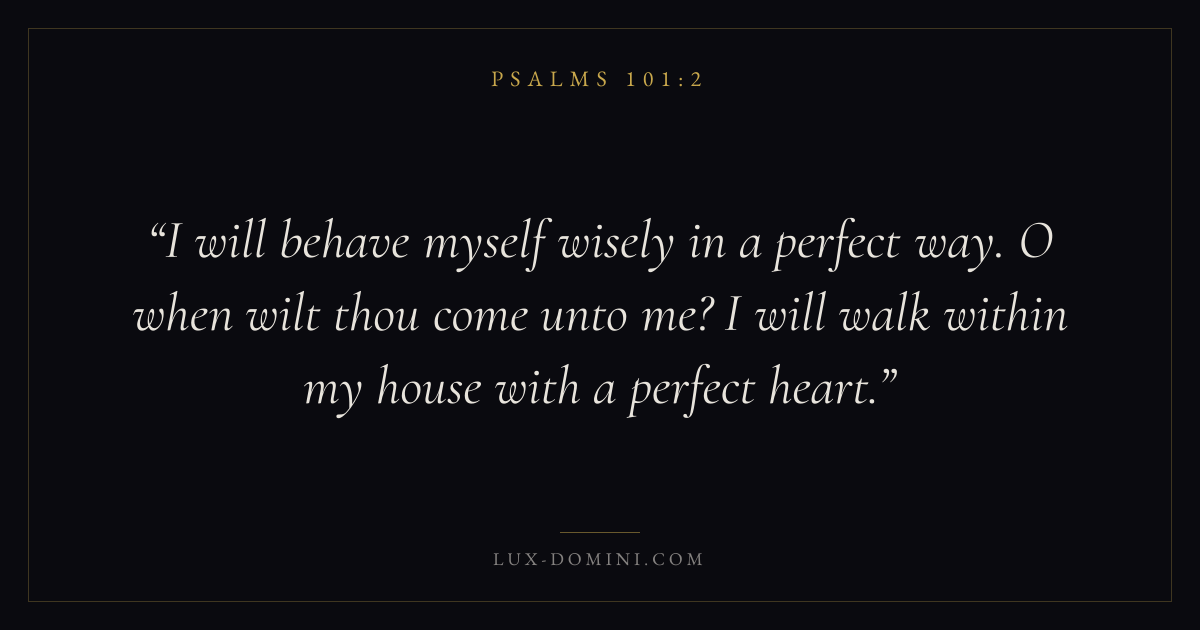 I will behave myself wisely in a perfect way. O when wilt thou come unto me? I will walk within my house with a perfect heart.