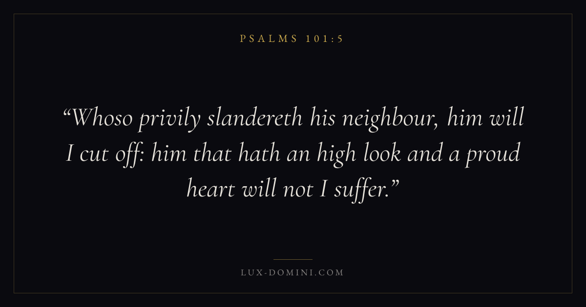 Whoso privily slandereth his neighbour, him will I cut off: him that hath an high look and a proud heart will not I suffer.