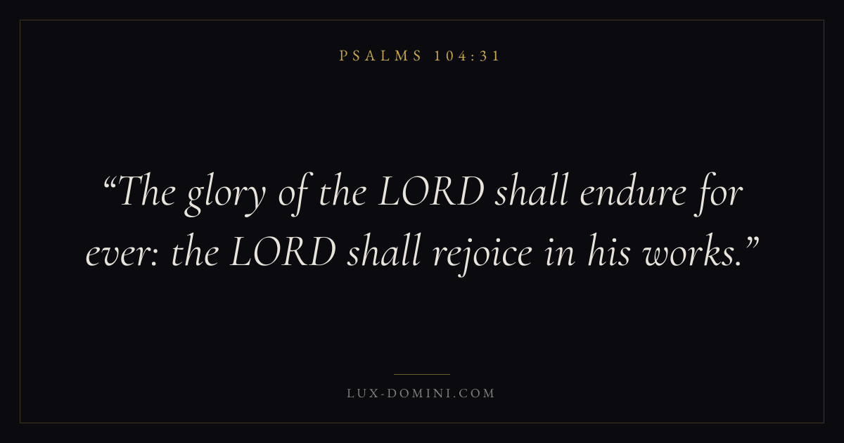 The glory of the LORD shall endure for ever: the LORD shall rejoice in his works.