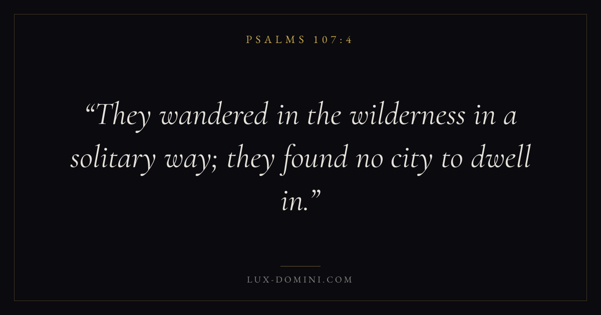 They wandered in the wilderness in a solitary way; they found no city to dwell in.