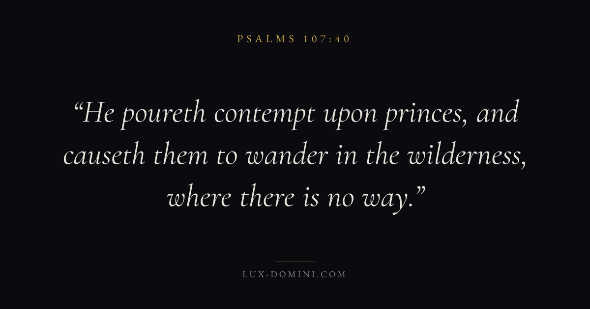 He poureth contempt upon princes, and causeth them to wander in the wilderness, where there is no way.