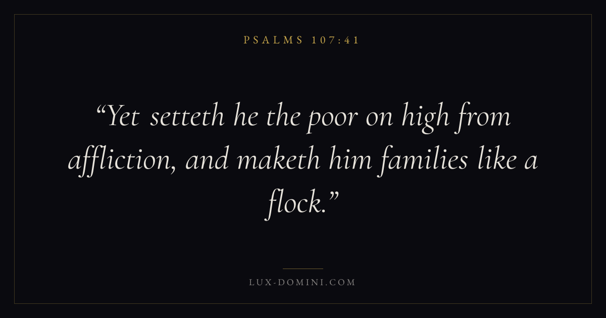 Yet setteth he the poor on high from affliction, and maketh him families like a flock.