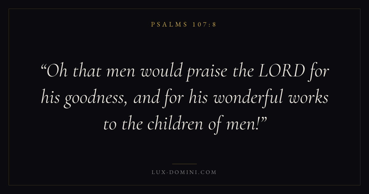 Oh that men would praise the LORD for his goodness, and for his wonderful works to the children of men!