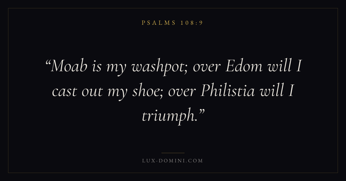 Moab is my washpot; over Edom will I cast out my shoe; over Philistia will I triumph.