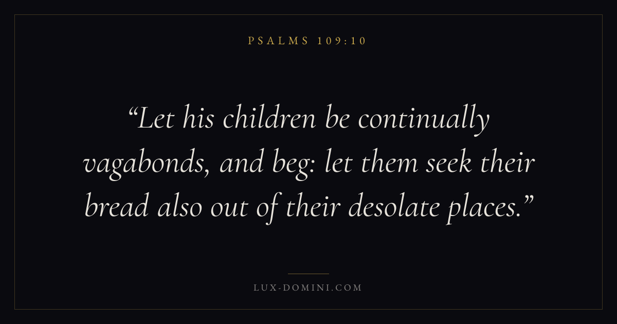 Let his children be continually vagabonds, and beg: let them seek their bread also out of their desolate places.