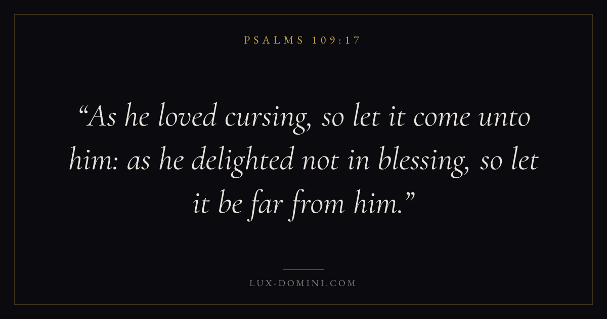 As he loved cursing, so let it come unto him: as he delighted not in blessing, so let it be far from him.