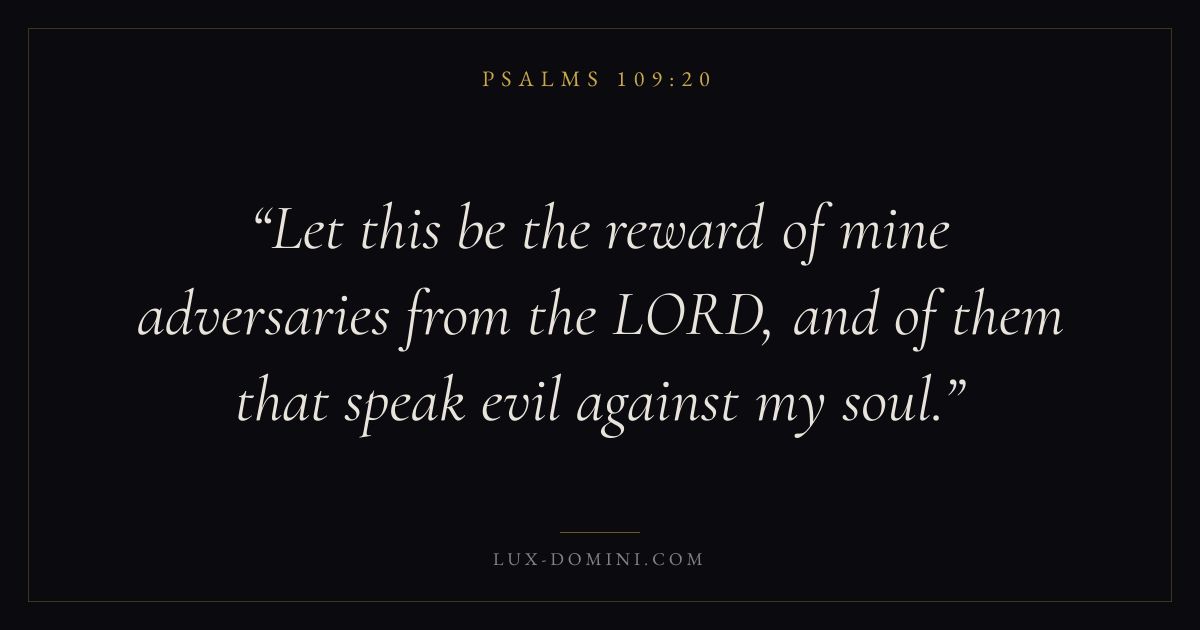 Let this be the reward of mine adversaries from the LORD, and of them that speak evil against my soul.