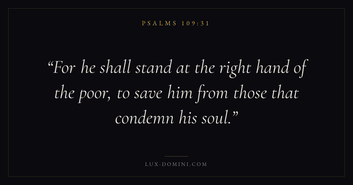 For he shall stand at the right hand of the poor, to save him from those that condemn his soul.
