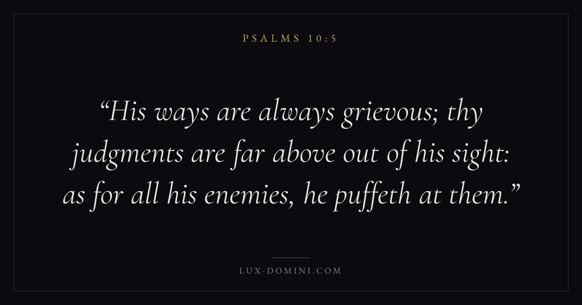 His ways are always grievous; thy judgments are far above out of his sight: as for all his enemies, he puffeth at them.