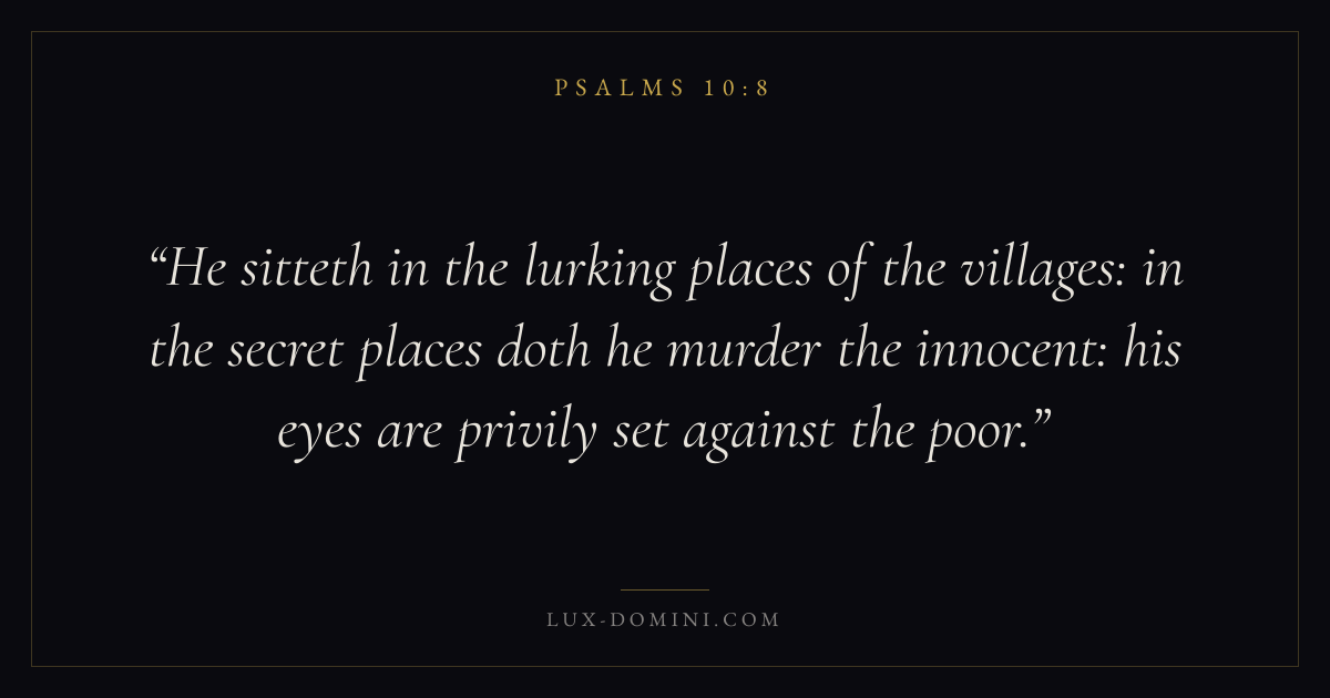 He sitteth in the lurking places of the villages: in the secret places doth he murder the innocent: his eyes are privily set against the poor.