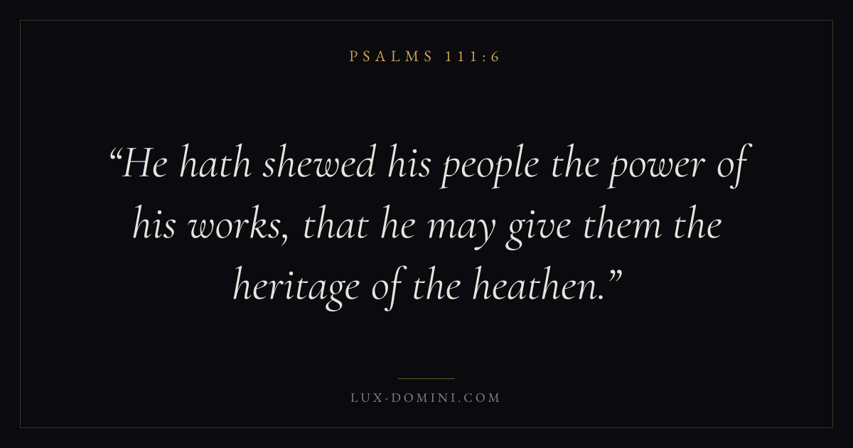 He hath shewed his people the power of his works, that he may give them the heritage of the heathen.