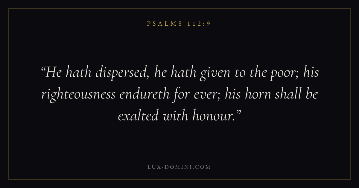He hath dispersed, he hath given to the poor; his righteousness endureth for ever; his horn shall be exalted with honour.
