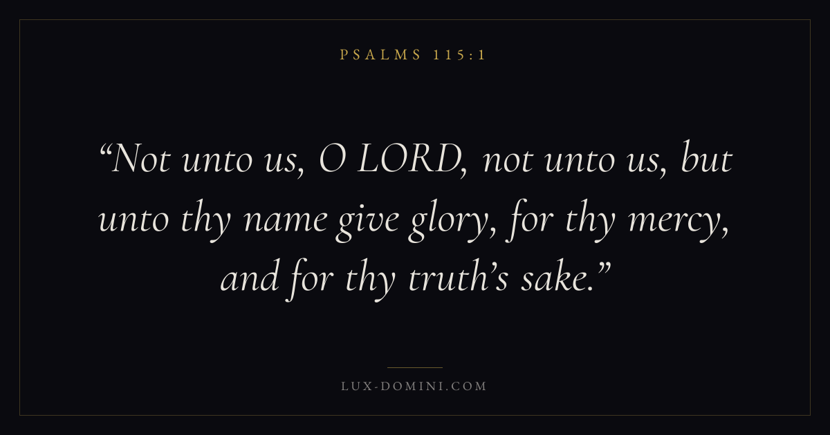 Not unto us, O LORD, not unto us, but unto thy name give glory, for thy mercy, and for thy truth’s sake.
