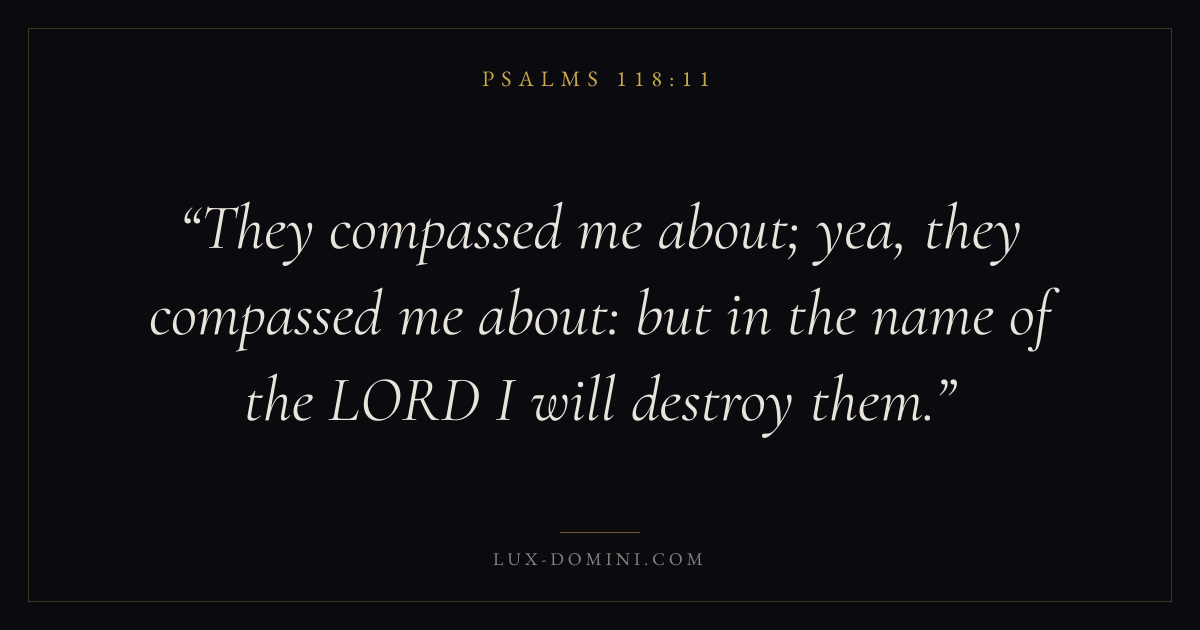 They compassed me about; yea, they compassed me about: but in the name of the LORD I will destroy them.