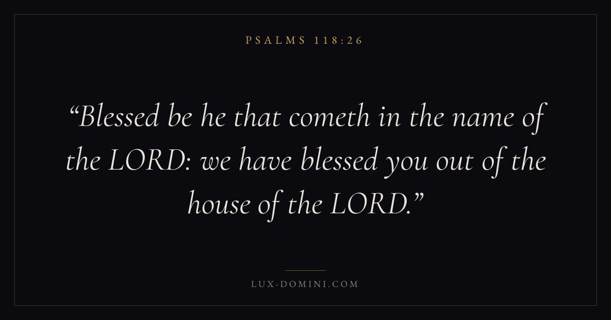 Blessed be he that cometh in the name of the LORD: we have blessed you out of the house of the LORD.
