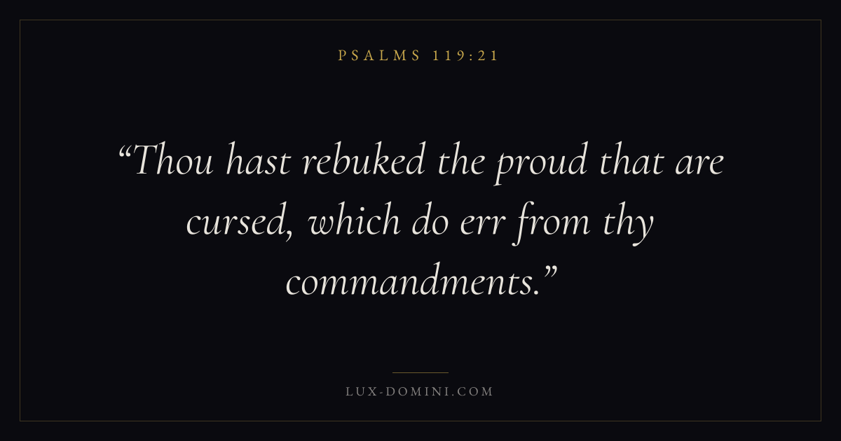 Books / Psalms / Chapter 119 / Verse 21 ← Psalms 119:20 Psalms 119:21 Psalms 119:22 → Thou hast rebuked the proud that are cursed, which do err from thy commandments. Download verse card Share on Twitter Share on Facebook Pin it ✦ Key themes FaithPrayerJustice and mercyHumilityPraise Read with Hebrews 11:1Romans 10:17Matthew 6:9Luke 18:1 Related topics Bible verses about faithBible verses about prayerBible verses about justice and mercyBible verses about humilityBible verses about thankfulness and gratitude ✦ Psalms Chapter 119 verses V. 1 V. 2 V. 3 V. 4 V. 5 V. 6 V. 7 V. 8 V. 9 V. 10 V. 11 V. 12 V. 13 V. 14 V. 15 V. 16 V. 17 V. 18 V. 19 V. 20 V. 21 V. 22 V. 23 V. 24 V. 25 V. 26 V. 27 V. 28 V. 29 V. 30 V. 31 V. 32 V. 33 V. 34 V. 35 V. 36 V. 37 V. 38 V. 39 V. 40 V. 41 V. 42 V. 43 V. 44 V. 45 V. 46 V. 47 V. 48 V. 49 V. 50 V. 51 V. 52 V. 53 V. 54 V. 55 V. 56 V. 57 V. 58 V. 59 V. 60 V. 61 V. 62 V. 63 V. 64 V. 65 V. 66 V. 67 V. 68 V. 69 V. 70 V. 71 V. 72 V. 73 V. 74 V. 75 V. 76 V. 77 V. 78 V. 79 V. 80 V. 81 V. 82 V. 83 V. 84 V. 85 V. 86 V. 87 V. 88 V. 89 V. 90 V. 91 V. 92 V. 93 V. 94 V. 95 V. 96 V. 97 V. 98 V. 99 V. 100 V. 101 V. 102 V. 103 V. 104 V. 105 V. 106 V. 107 V. 108 V. 109 V. 110 V. 111 V. 112 V. 113 V. 114 V. 115 V. 116 V. 117 V. 118 V. 119 V. 120 V. 121 V. 122 V. 123 V. 124 V. 125 V. 126 V. 127 V. 128 V. 129 V. 130 V. 131 V. 132 V. 133 V. 134 V. 135 V. 136 V. 137 V. 138 V. 139 V. 140 V. 141 V. 142 V. 143 V. 144 V. 145 V. 146 V. 147 V. 148 V. 149 V. 150 V. 151 V. 152 V. 153 V. 154 V. 155 V. 156 V. 157 V. 158 V. 159 V. 160 V. 161 V. 162 V. 163 V. 164 V. 165 V. 166 V. 167 V. 168 V. 169 V. 170 V. 171 V. 172 V. 173 V. 174 V. 175 V. 176