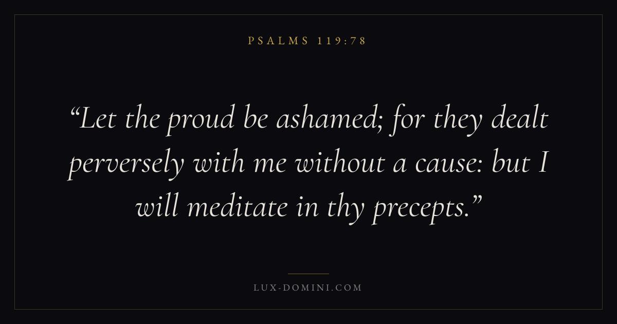 Let the proud be ashamed; for they dealt perversely with me without a cause: but I will meditate in thy precepts.