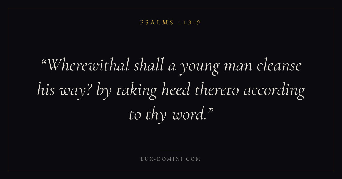 Wherewithal shall a young man cleanse his way? by taking heed thereto according to thy word.