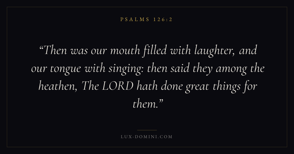 Then was our mouth filled with laughter, and our tongue with singing: then said they among the heathen, The LORD hath done great things for them.