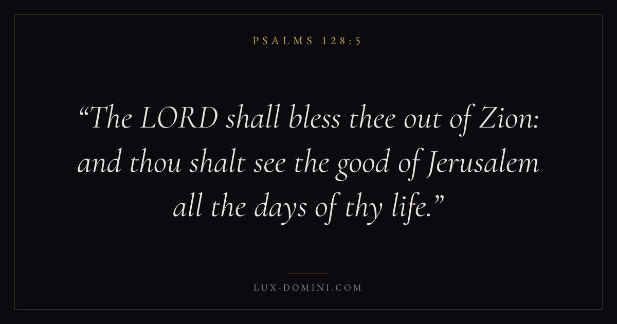 The LORD shall bless thee out of Zion: and thou shalt see the good of Jerusalem all the days of thy life.