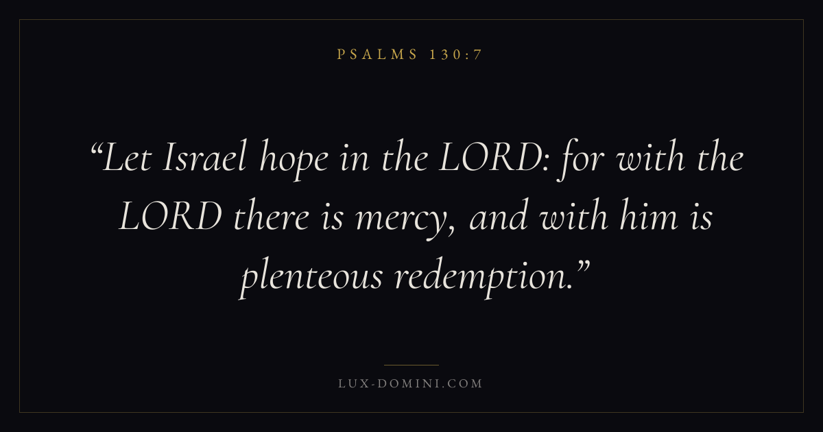 Let Israel hope in the LORD: for with the LORD there is mercy, and with him is plenteous redemption.