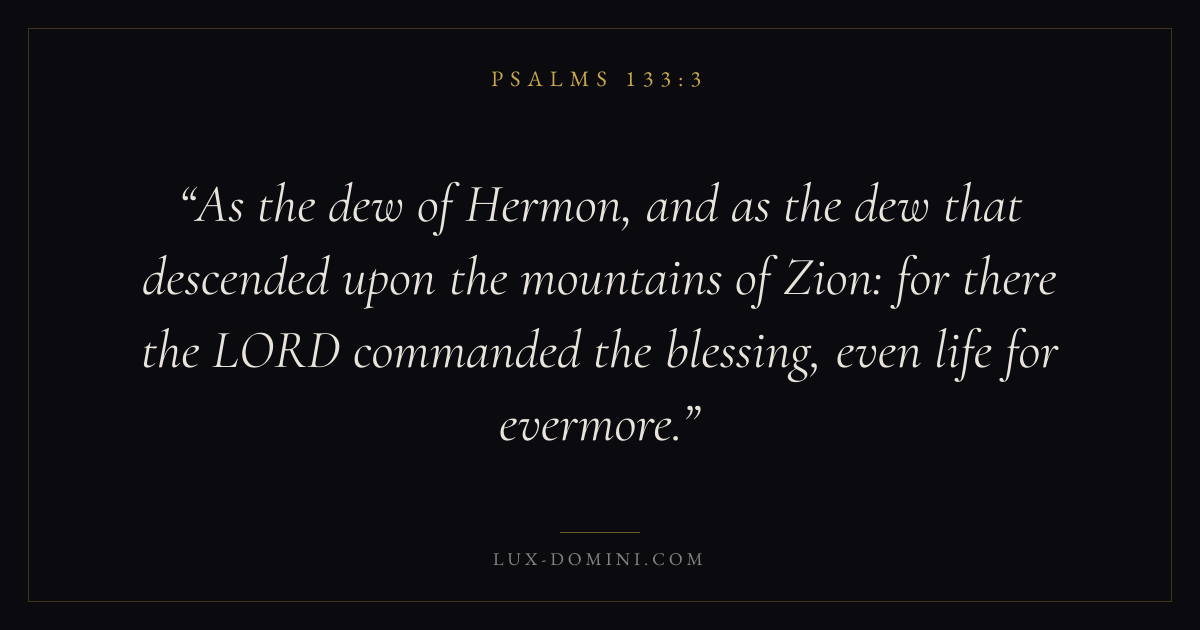 As the dew of Hermon, and as the dew that descended upon the mountains of Zion: for there the LORD commanded the blessing, even life for evermore.