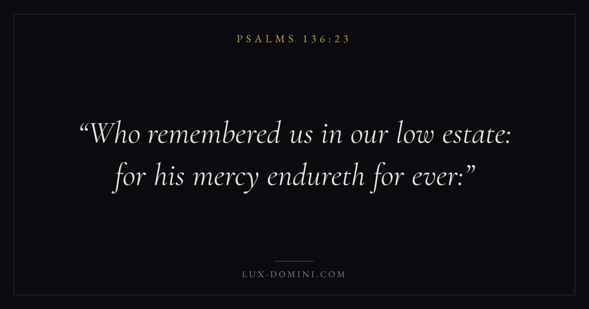 Who remembered us in our low estate: for his mercy endureth for ever:
