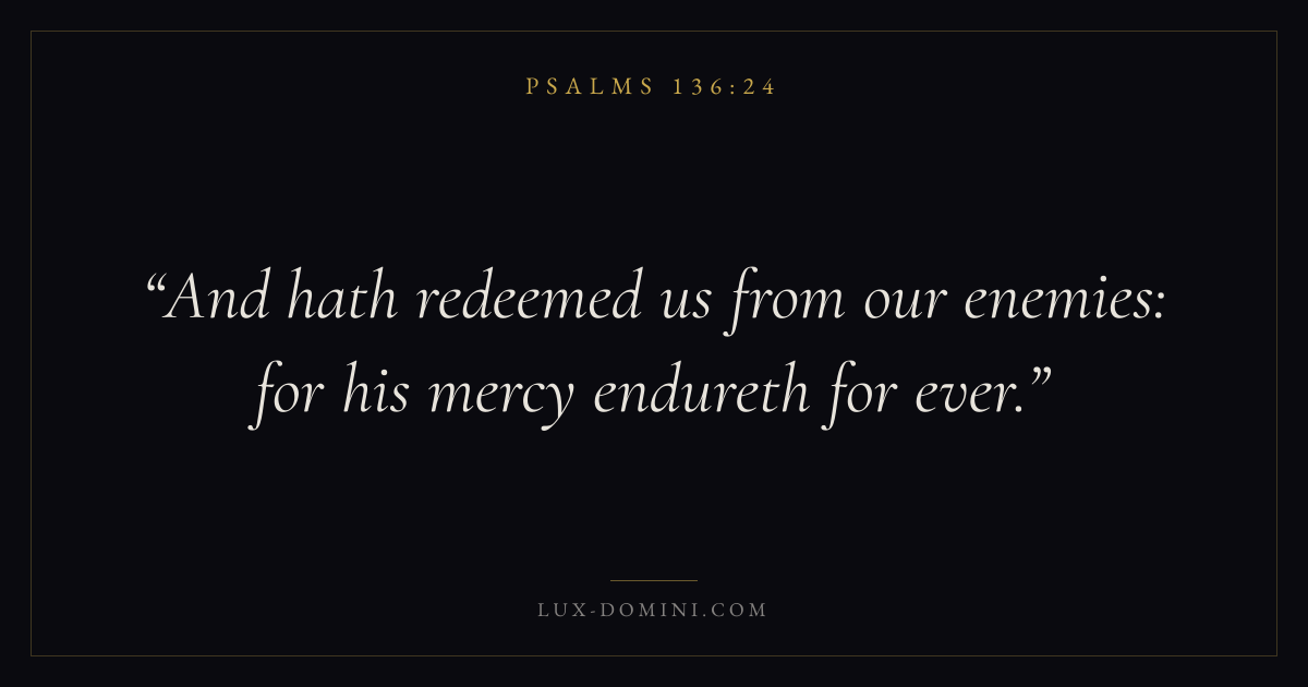 And hath redeemed us from our enemies: for his mercy endureth for ever.