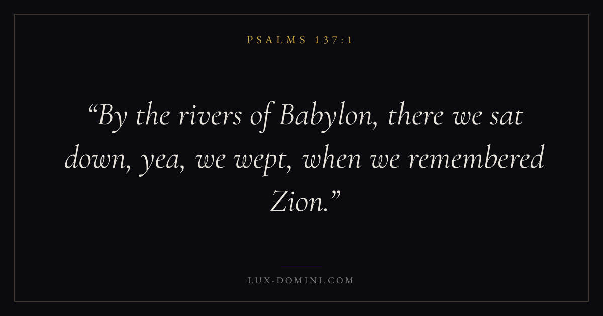 By the rivers of Babylon, there we sat down, yea, we wept, when we remembered Zion.