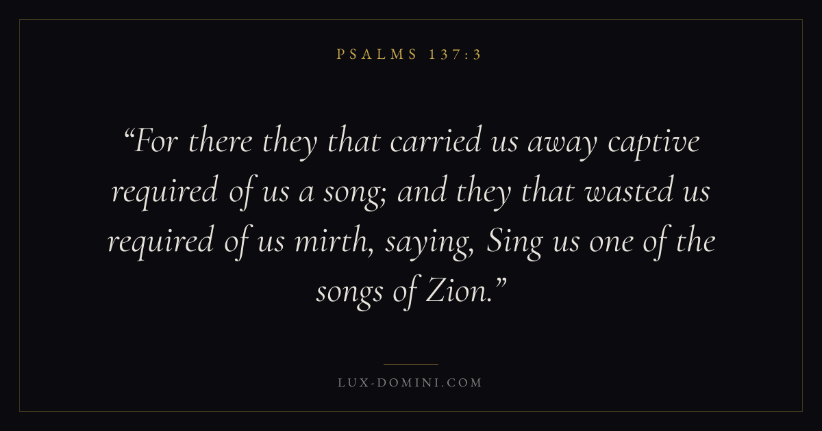 For there they that carried us away captive required of us a song; and they that wasted us required of us mirth, saying, Sing us one of the songs of Zion.