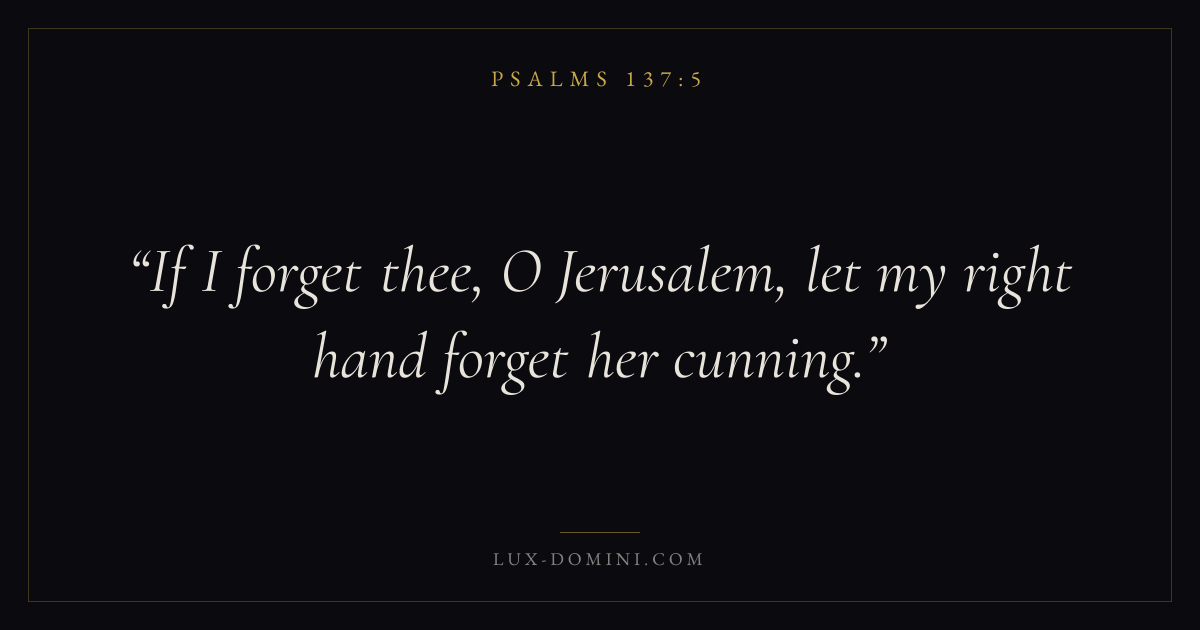 If I forget thee, O Jerusalem, let my right hand forget her cunning.