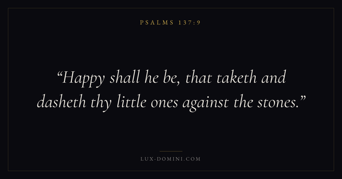 Happy shall he be, that taketh and dasheth thy little ones against the stones.