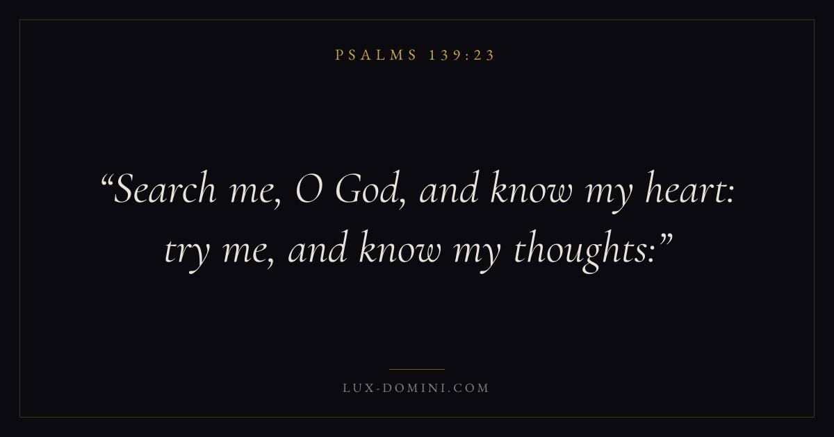 Search me, O God, and know my heart: try me, and know my thoughts: