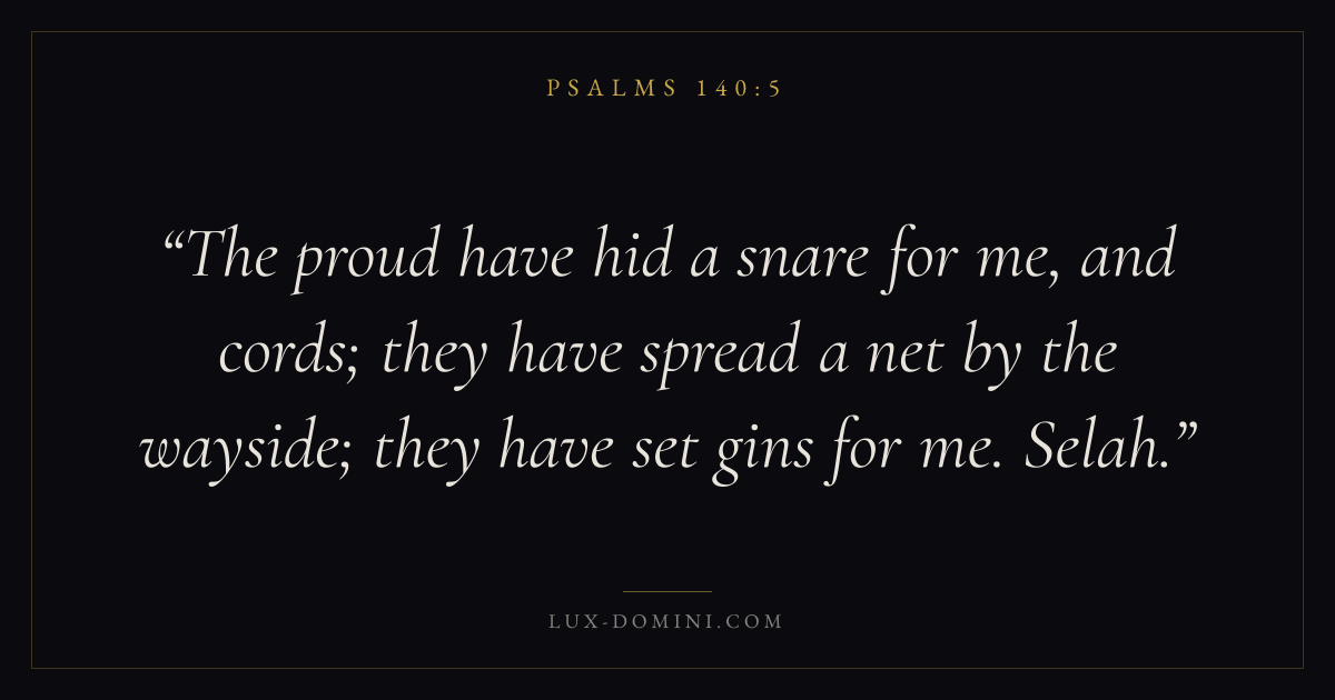 The proud have hid a snare for me, and cords; they have spread a net by the wayside; they have set gins for me. Selah.