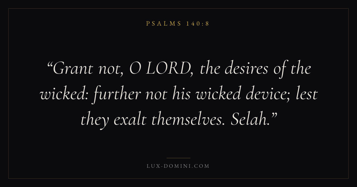 Grant not, O LORD, the desires of the wicked: further not his wicked device; lest they exalt themselves. Selah.