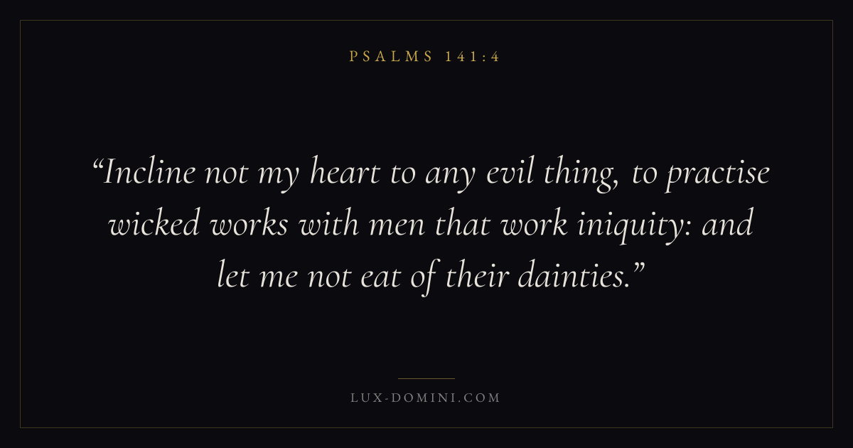 Incline not my heart to any evil thing, to practise wicked works with men that work iniquity: and let me not eat of their dainties.