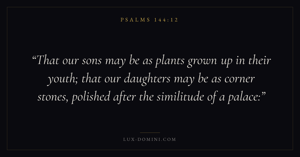 That our sons may be as plants grown up in their youth; that our daughters may be as corner stones, polished after the similitude of a palace: