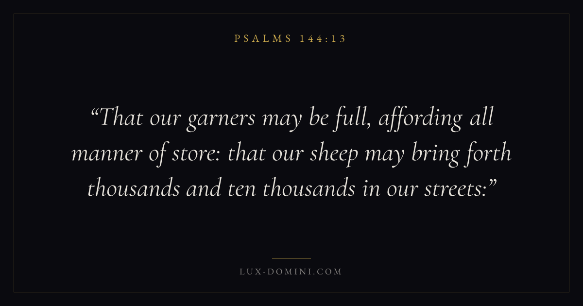That our garners may be full, affording all manner of store: that our sheep may bring forth thousands and ten thousands in our streets: