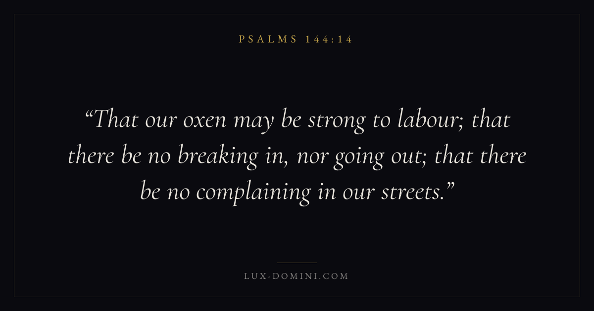 That our oxen may be strong to labour; that there be no breaking in, nor going out; that there be no complaining in our streets.