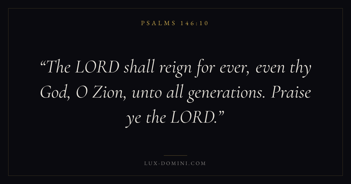 The LORD shall reign for ever, even thy God, O Zion, unto all generations. Praise ye the LORD.