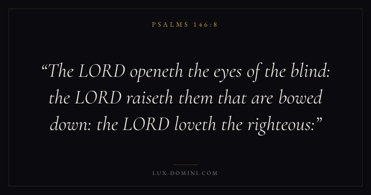 The LORD openeth the eyes of the blind: the LORD raiseth them that are bowed down: the LORD loveth the righteous:
