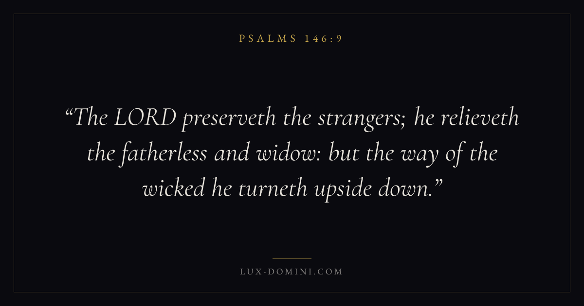 The LORD preserveth the strangers; he relieveth the fatherless and widow: but the way of the wicked he turneth upside down.