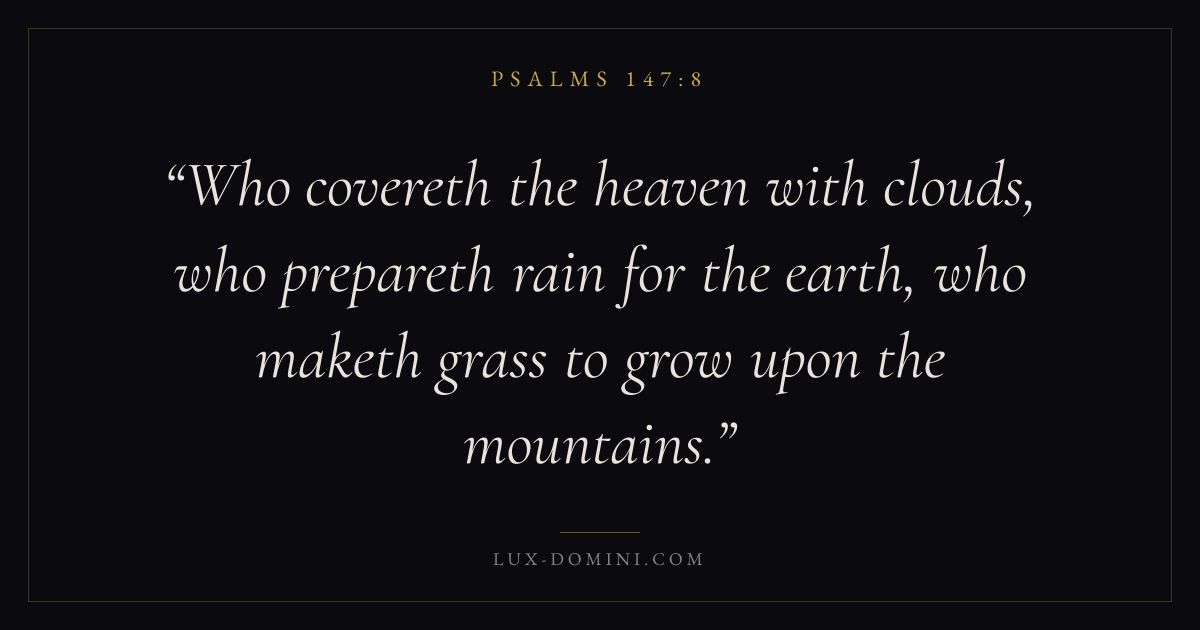 Who covereth the heaven with clouds, who prepareth rain for the earth, who maketh grass to grow upon the mountains.