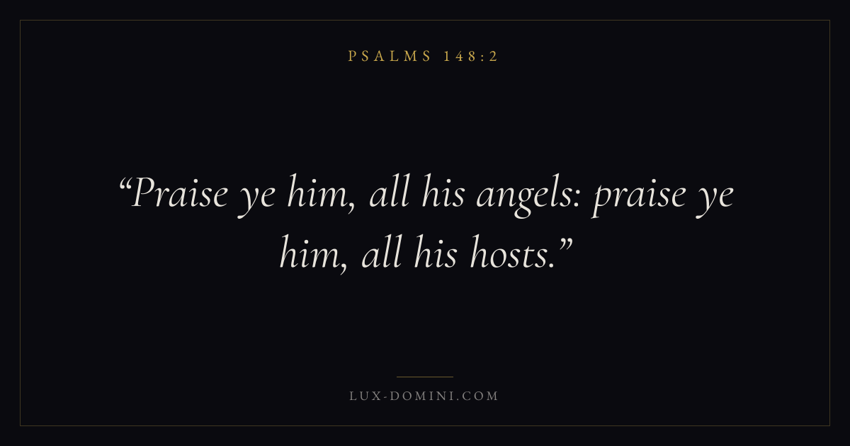 Books / Psalms / Chapter 148 / Verse 2 ← Psalms 148:1 Psalms 148:2 Psalms 148:3 → Praise ye him, all his angels: praise ye him, all his hosts. Download verse card Share on Twitter Share on Facebook Pin it ✦ Key themes FaithPrayerPraiseLament Read with Hebrews 11:1Romans 10:17Matthew 6:9Luke 18:1 Related topics Bible verses about faithBible verses about prayerBible verses about thankfulness and gratitudeBible verses about grief and loss ✦ Psalms Chapter 148 verses V. 1 V. 2 V. 3 V. 4 V. 5 V. 6 V. 7 V. 8 V. 9 V. 10 V. 11 V. 12 V. 13 V. 14